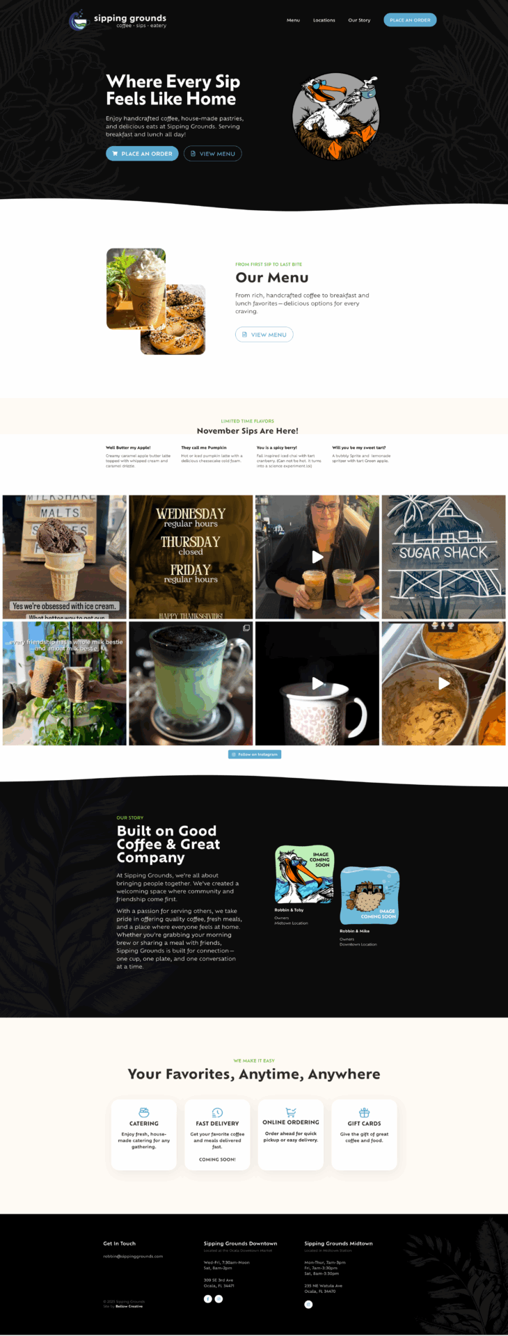 Sipping Grounds was already *the* neighborhood spot, the kind of place where people know the barista’s name and the coffee hits just right. But when they opened a second location at Ocala’s Midtown Station, they needed a website that could keep up.